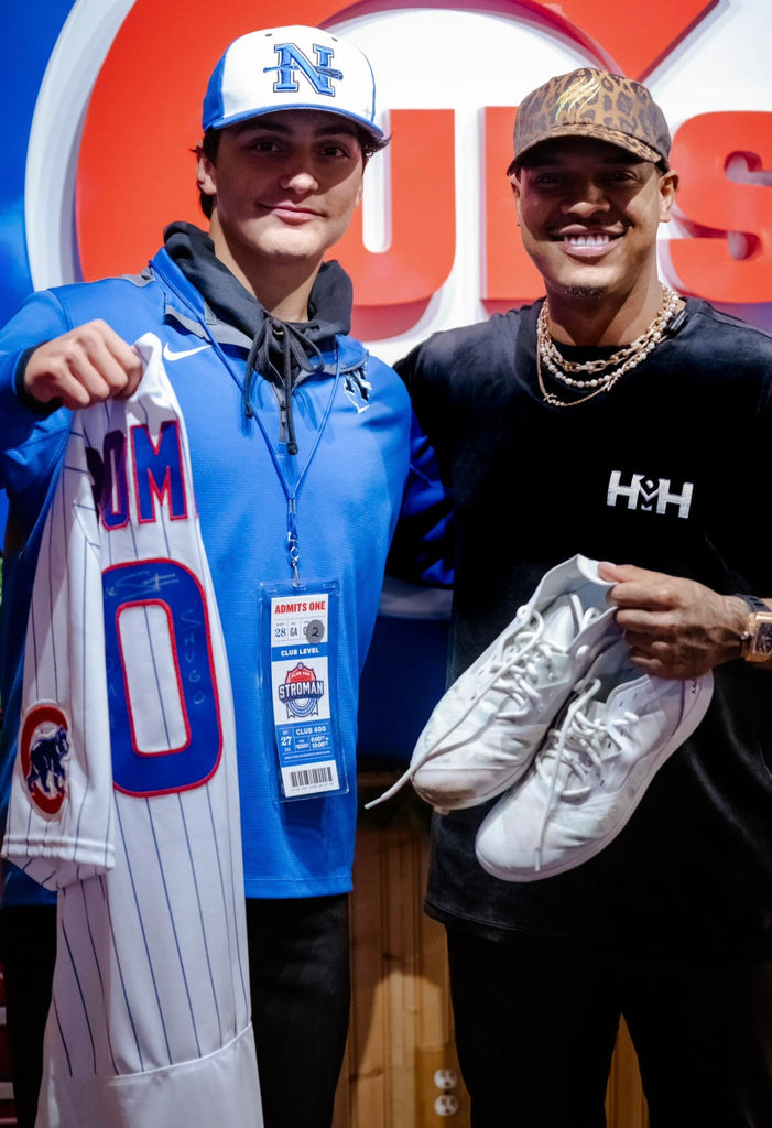GG: “Meeting Marcus Stroman at the Club 400 Charity event is hard to put into words. I have been following his career for years, from baseball to his HDMH brand. I admire his swagger, his style, and his focus on the mound. I wear his #6 for High School ball and #0 for travel baseball. He was so friendly and personable. I could have talked to him about baseball for hours, from shoes to pitches. It was just too cool. I still cannot believe it!”